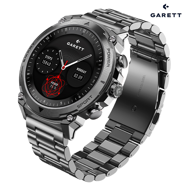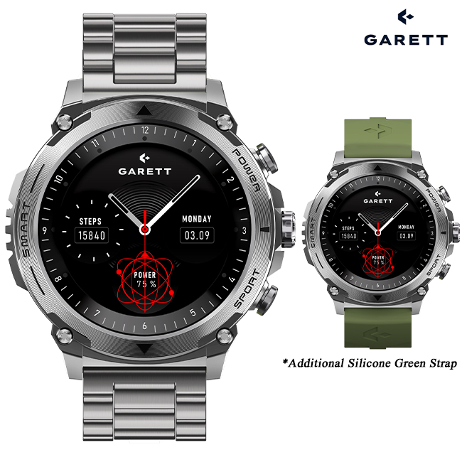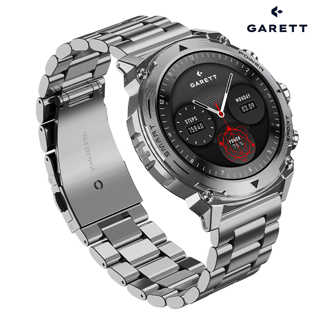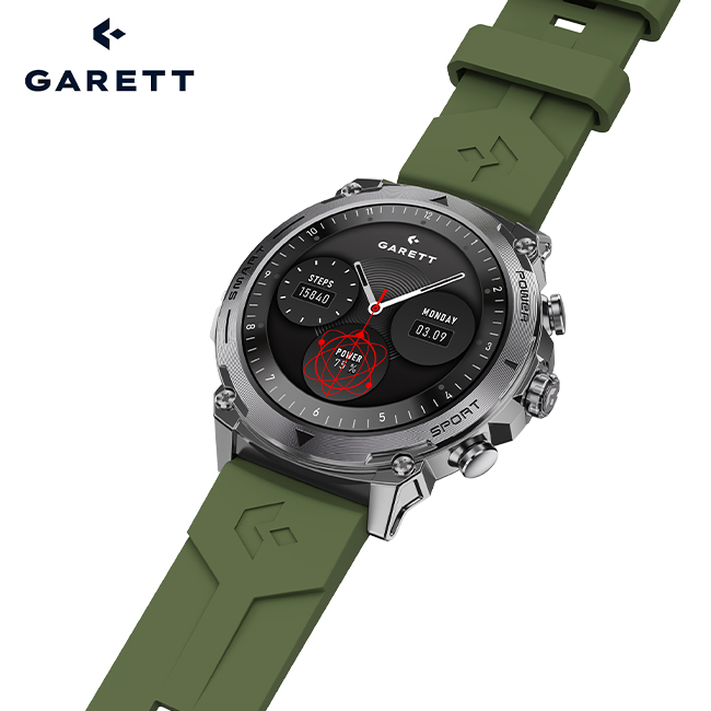 • What’s in the box: GARETT smartwatch, additional silicone strap, bracelet adjustment tool, charging cable, QSG manual