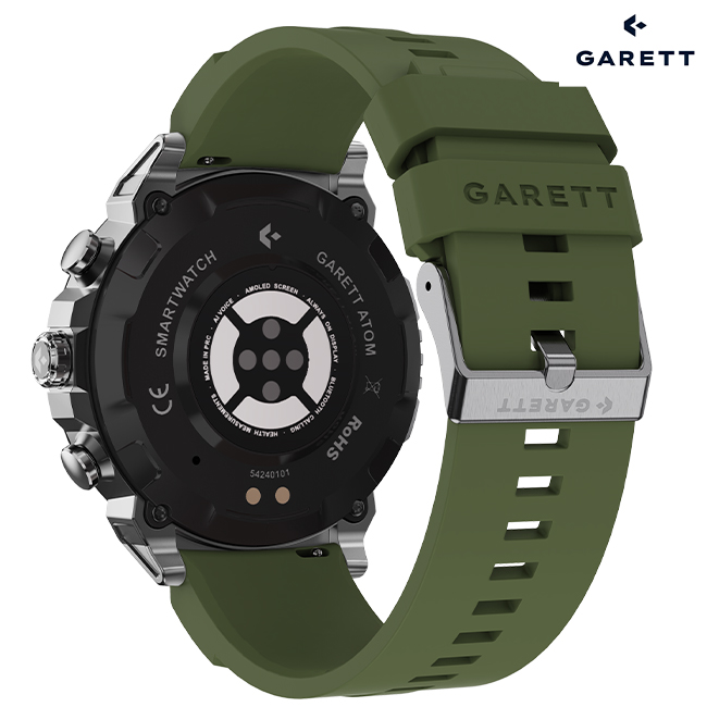 The Garett Atom is equipped with advanced sensors that monitor key health parameters. The watch measures heart rate, blood oxygen levels, and blood pressure, and also functions as a pedometer, calorie counter, and sleep monitor. This allows you to track your progress and promote regeneration. Additionally, the breathing training function helps reduce stress and improve well-being. It’s a comprehensive tool that supports your health every day.
