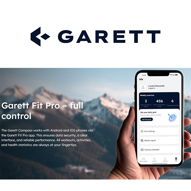 Garett Compass works seamlessly with Android and iOS systems, using the dedicated Garett Fit Pro app. It enables secure data collection, intuitive feature management, and quick access to health statistics, training, and activity data in one place.
